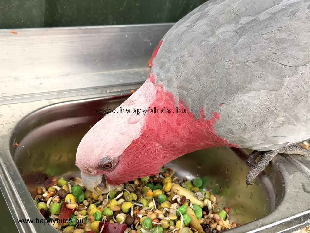 The galah cockatoo (Eolophus roseicapilla) is an incredibly intelligent, playful, and “good-appetite” species.